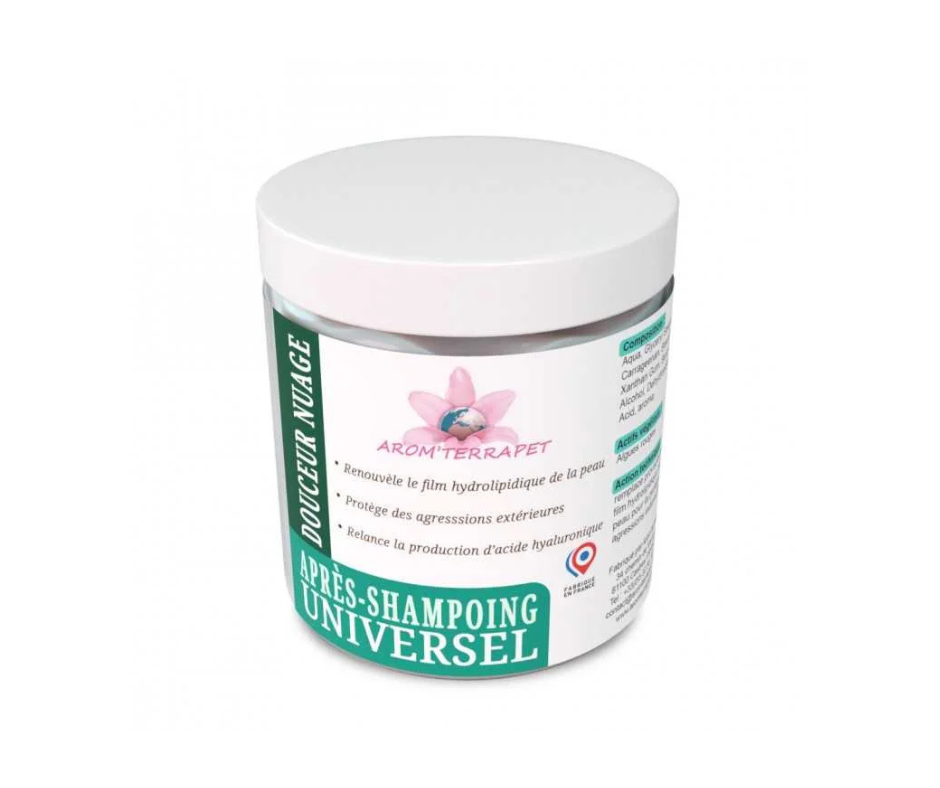 L’après-shampoing Douceur Nuage est recommandé pour tous les types de peaux. Sa texture légère et non grasse le rend facile à appliquer, sans risque de laisser votre animal avec le pelage huileux après le toilettage.