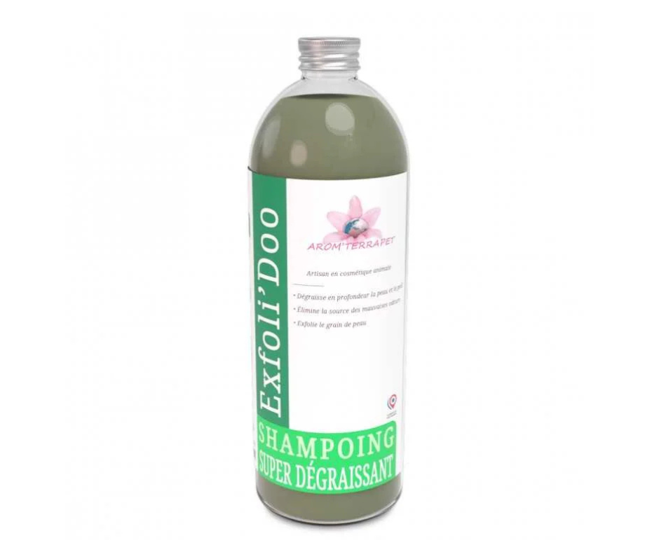 Le shampoing Exfoli’Doo est recommandé pour les animaux ayant la peau ou le poil gras. Sa formule à base d’argile verte montmorillonite aide à désincruster les pores et à absorber l’excès de sébum, pour un pelage propre et léger.