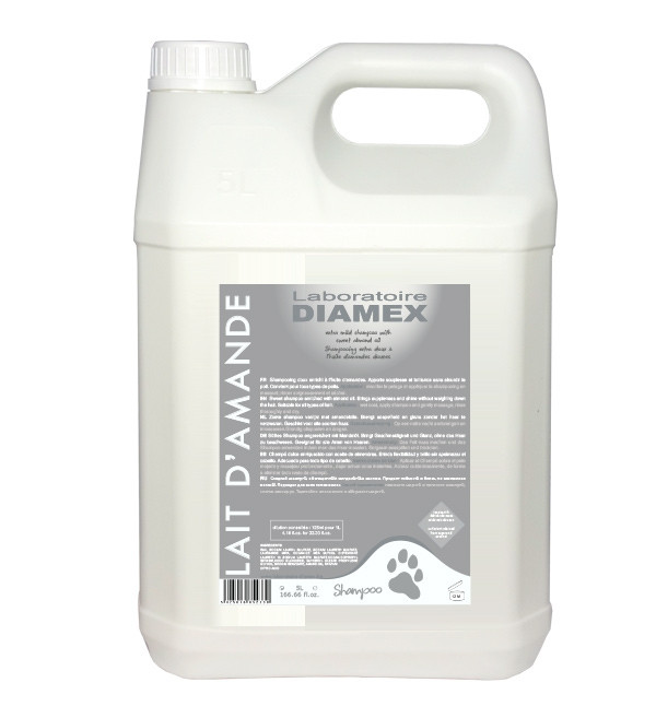 Shampooing pour chiens Diamex LAIT D’AMANDES est un soin complet qui hydrate, adoucit, et apporte une brillance naturelle, tout en maintenant la légèreté du pelage.